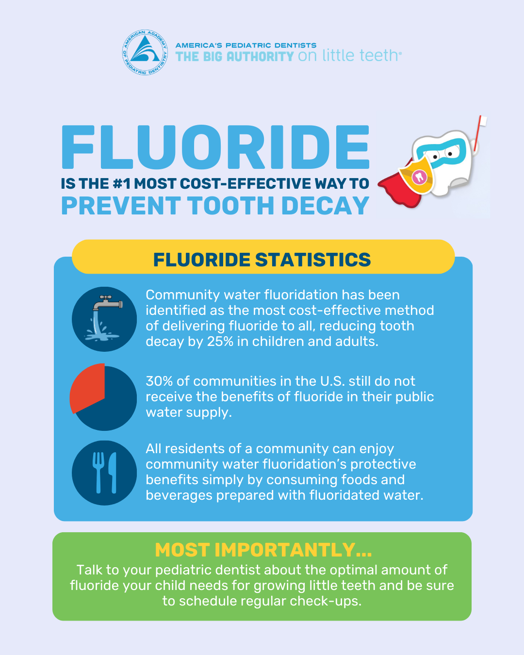 Talk to your pediatric dentist about the optimal amount of fluoride your child needs for growing little teeth and be sure to schedule regular check-ups.